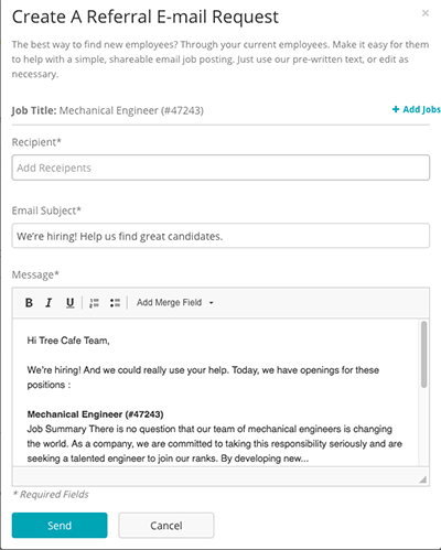 - Most recruiters understand that referrals are often times the source of the highest quality hires, but does your ATS make it easy to collect them? A high emphasis on referral features is the sign of software that understands the source of quality candidates, and accordingly, it should enable you to share open positions with your employees and leverage their recommendations. MightyRecruiter both offers a simple way to blast out an email for collecting referrals and tracks them – that way you know to whom you should attribute the candidate and can hopefully offer a nice reward if the candidate gets hired.
